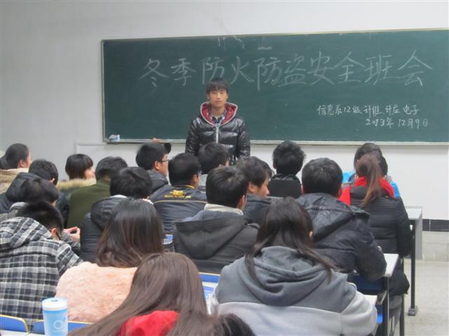 为预防和减少火灾危害,增强防盗意识,共创平安和谐校园,2013年12月10日上午,信息工程系辅导员走进学生宿舍进行对安全隐患进行排查,同时开展防火防盗教育。