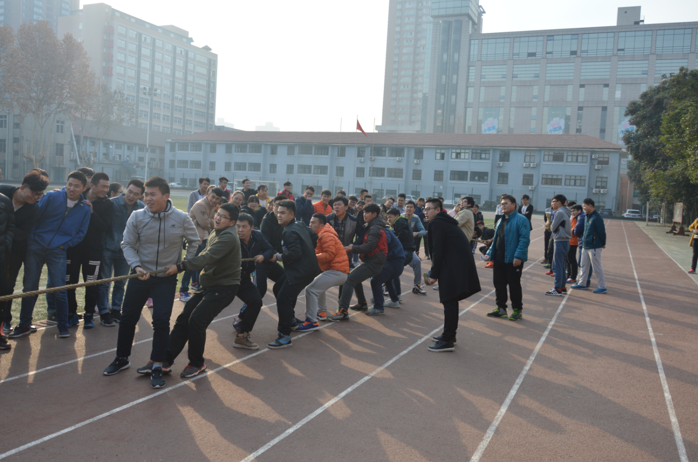 关于拔河比赛,每个班出15名同学,男女不限。比赛开始了,各班队员摩拳擦掌,信心十足,队员们紧握绳子,脚弓步,身子一齐向后倒。只听裁判员哨声一响,两班队员一齐使劲往后拉,嘴里喊着口号,谁都不服输。啦啦队们也不甘示弱,喊声一阵高过一阵。这是每位同学比赛的精彩表现,是每位同学奋斗向上的写实。而此次活动将决赛放于12.9日,五支队伍进行轮番比赛为大家献上精彩激烈的比赛,通过赢得一场得一分的积分赛。在本次活动中13161班获得了冠军。
