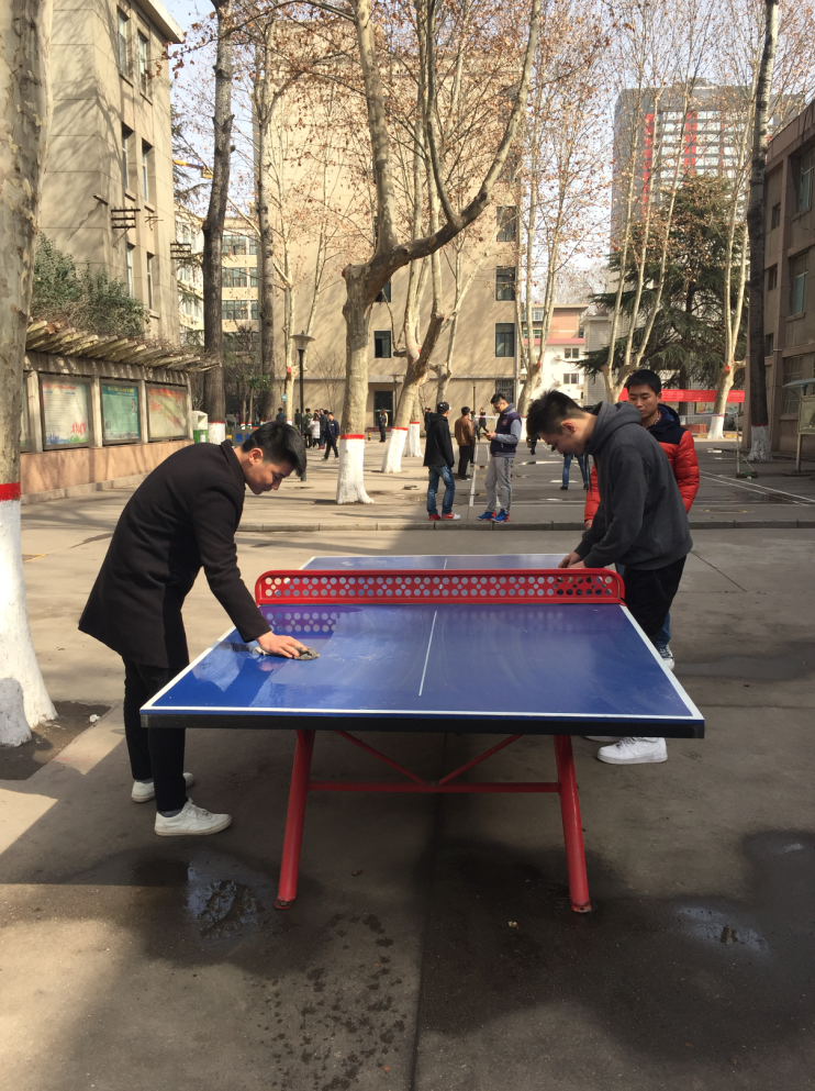刚刚两点,南教学楼前就聚满了志愿者,他们精神饱满,热情洋溢,随时准备出发。随后,所有的志愿者在南教学楼前合影留念,最后开始清扫校园的活动。组织人员将学校总共分为18个区域,各自班级按照提前分配好的区域开始进行清扫活动。