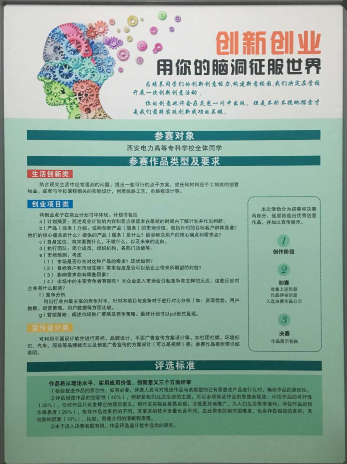 为激发大学生创新创意热情,营造浓厚的校园创新创业氛围,分享创新创意的实践经验,构建新意校园,我校特地举办了创新创意大赛。