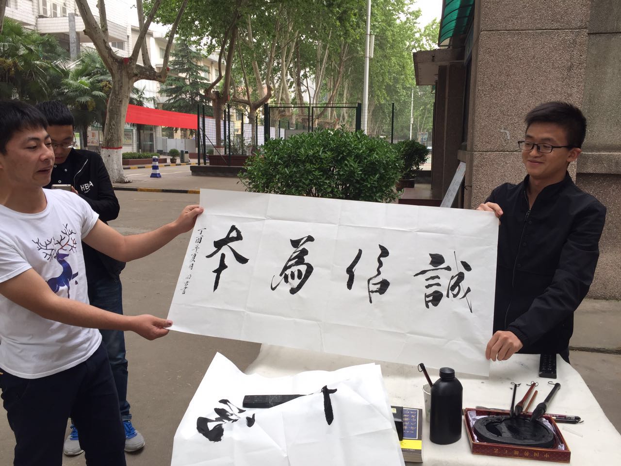 此次活动校学生会社团部准备充分,涉及琴、棋、书、画、武艺等各方面活动内容。首先开场为大家带来了舞旗的表演,表演者动作一致,精神抖擞;接下来为大家带来了多人双截棍的表演,他们动作熟练,速度敏捷,赢得了热烈的掌声;之后进行了诗歌朗诵活动,参赛者声音洪亮,腔调慷慨激昂,参观者都沉浸在美妙的朗诵声中。接下来又进行了五子棋、象棋等棋艺PK,同学们都积极参与、主办方也做了充分的准备;还有一边的书法展也引来了不少书法爱好者,书法协会开展了以“字如其人”为主题的书法写字比拼吸引了全校各相关专业学生的参加,他们执笔习字,各显风采。活动场地气氛活跃,同学们都一展才华。
