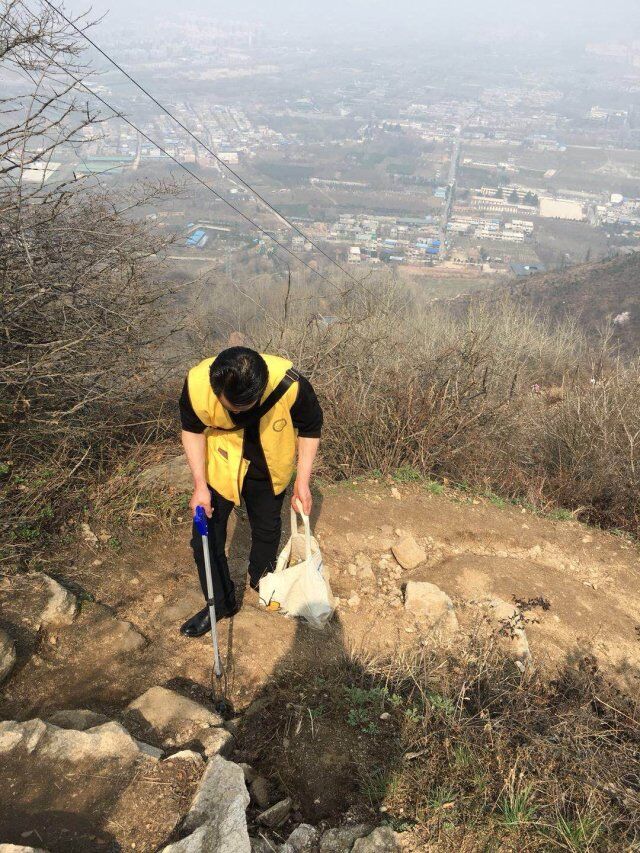 我们早上8点从学校出发,9点30分到达月亮沟脚下,在此次带队人员讲解完注意事项及简单分工后,志愿者沿登山道向上,一路捡拾沿途垃圾。有些垃圾被丢到荆棘丛生的山道陡坡中,志愿者仍不顾刺痛小心的攀爬上去捡拾。志愿者们对环保的认真重视也感染了沿途的不少游客,他们纷纷向我们竖起了大拇指。