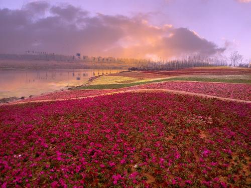 于是夏来了,一场雨的降临使绿变的张扬,把村庄外的野径淹没在丛生的杂草中,各种的野花更是争先地竞放着,夏用轻雾作了神秘的帏帐,用鸟语弹奏着晨曲,用各种浓浓的花香酝酿着我的呼吸。