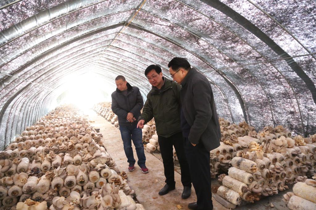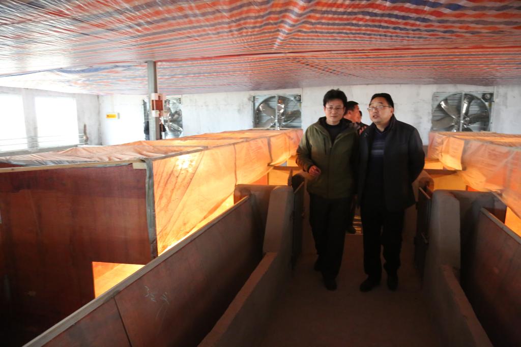 程一斌一行先后视察了回民村蘑菇种植基地、苍南村养猪基地,了解基地建设与经营情况。