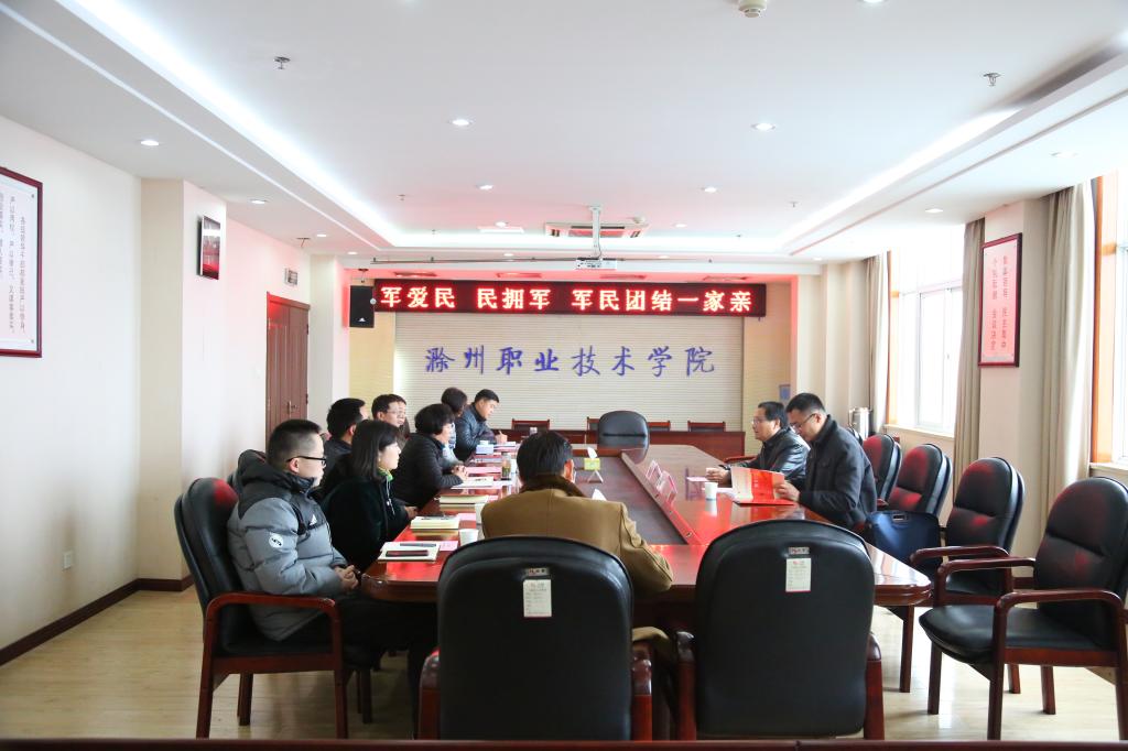 1月18日上午,由滁州市民政局副局长梁茂生、双拥办中校季海港组成的滁州市双拥模范单位考评验收组第一组来新葡的京官网检查双拥工作开展情况。院党委副书记、纪委书记刘树俭,院党委委员、副院长吴大明,办公室、学生处、团委相关人员参加了座谈会。