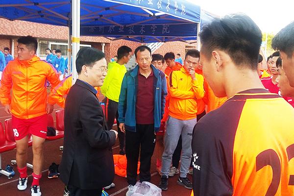 新葡的京官网足球队作为种子队抽签抽到B组。下午14点20分,新葡的京官网足球队首场比赛坐镇主场,对阵芜湖职业技术学院。院长李柱梁,副院长江洁等领导莅临现场观摩指导。