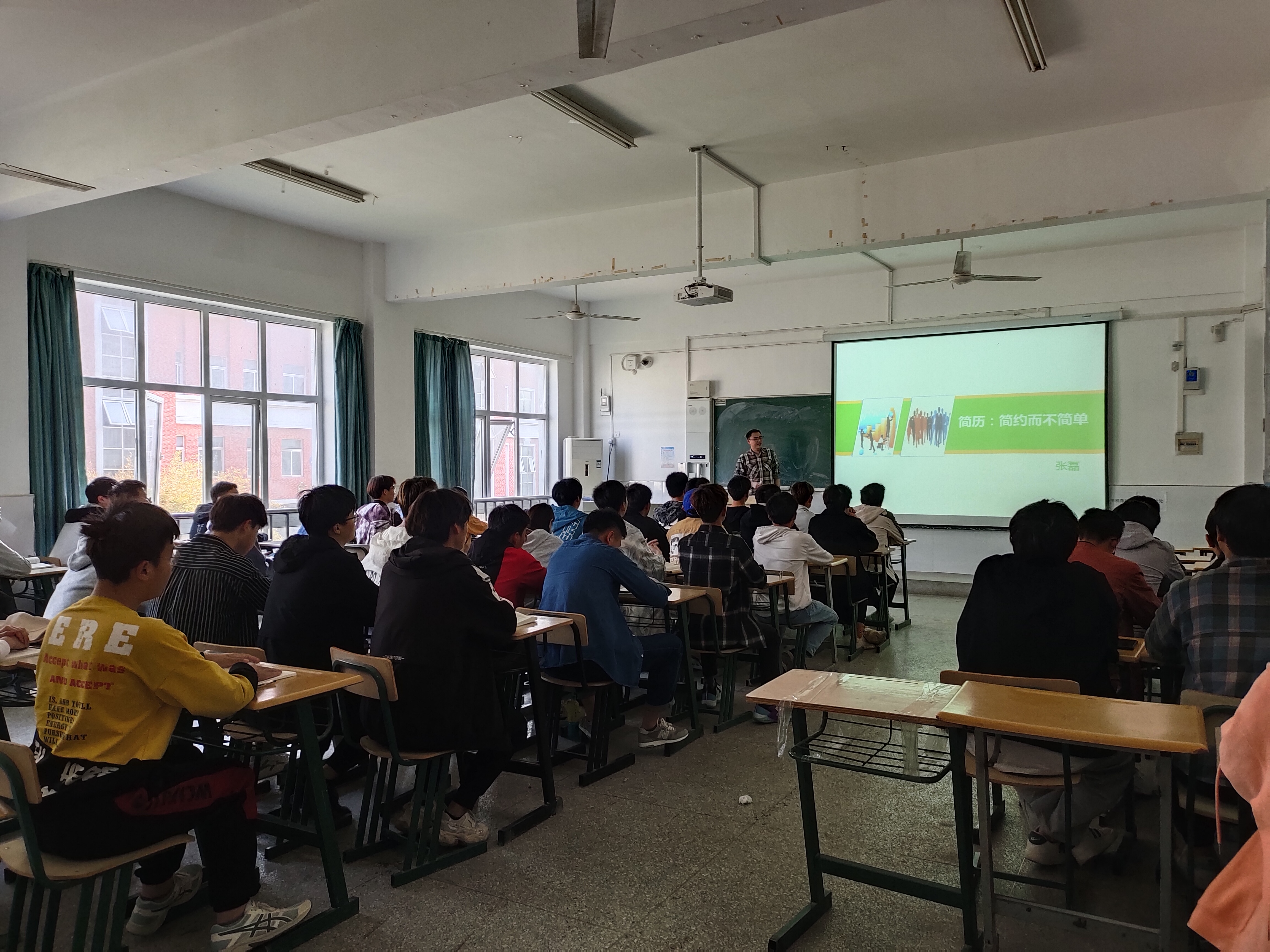 为了提高大学生的求职能力,掌握求职技巧。4月19日,办公室张磊老师在5213教室举办了一场以“简历:简约而不简单”为主题的讲座,互联网学院计算机相关专业学生听取了讲座。