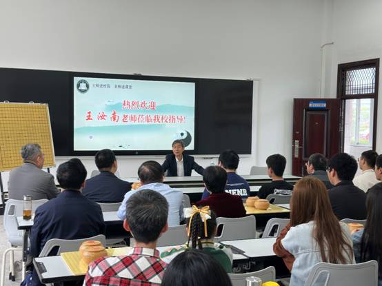 王汝南大师从“尧造围棋、教子丹朱”讲起,系统地讲述了围棋的发展史。以烂柯一梦、肥水之战等故事生动又不失风趣地讲述了围棋趣事,向我们展示出围棋的自由与创新、和谐与对抗、力量与美感、理性与情感的无与伦比的艺术魅力。王大师指出,办老年大学开设围棋班一定要考虑到老年人固执、爱唠叨的特点,各项准备工作、教育实施必须做到细致且耐心,才能不失办学初心,真正“暖到民心”。