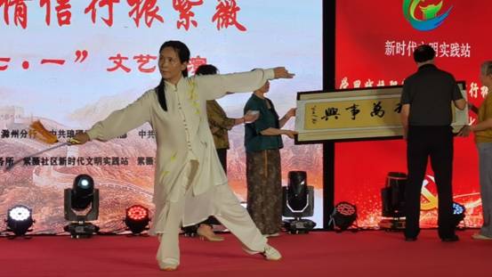 晚会带来的舞蹈、合唱、书法等12个节目都是观众喜闻乐见的歌颂新时代、弘扬斗争精神的表演,其中我老年大学紫薇分校参与演出的节目舞蹈《领航》、合唱《四渡赤水》、男声独唱《当你的秀发抚过我的钢枪》《太极与书法》受到现场观众热烈欢迎。