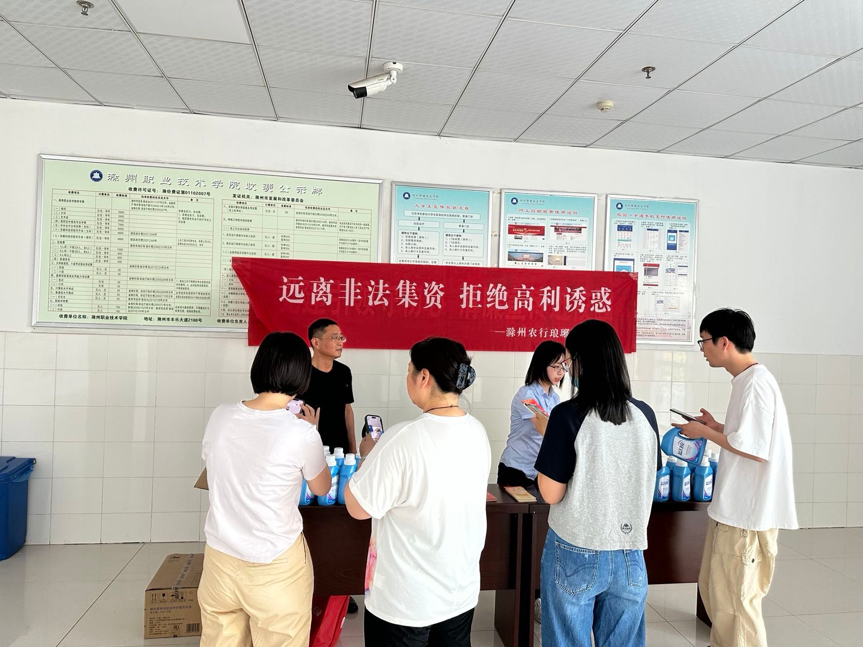 为了普及、宣传金融知识,提醒师生远离非法集资,进一步增强新葡的京官网师生正确识别和自觉抵制非法集资的意识和能力,2023年6月16日下午,计划财务处邀请滁州农行在校内展开“远离非法集资 拒绝高利诱惑”宣传活动。