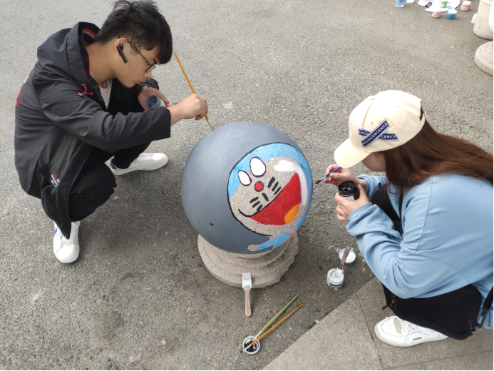 本次活动主要围绕校园周边环境与装饰展开,分别对校园里的石墩,井盖及日常用品进行创意绘画。我系学生会代表展现了高超的绘画和设计能力,根据物品的样式,合理规划设计一系列的作品,为校园添加了一份活力与精彩。