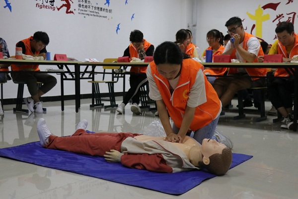 第一天是急救知识理论课,由李朋老师主讲,详细讲述了应急救护的理论知识,突发情况下自救与互救的注意事项,在讲解理论知识的同时又增加了一些互动的环节,提高了全员参与性和手动能力。第二天是急救知识实践课,李老师通过板书、视频、模拟现场等形式演示了在抢救的黄金时间如何对伤者进行心肺复苏,排除异物梗阻,创伤的止血与包扎方法等技能训练,学员们通过实际操作训练,掌握了心肺复苏的要点和多种止血,包扎,固定的方法。