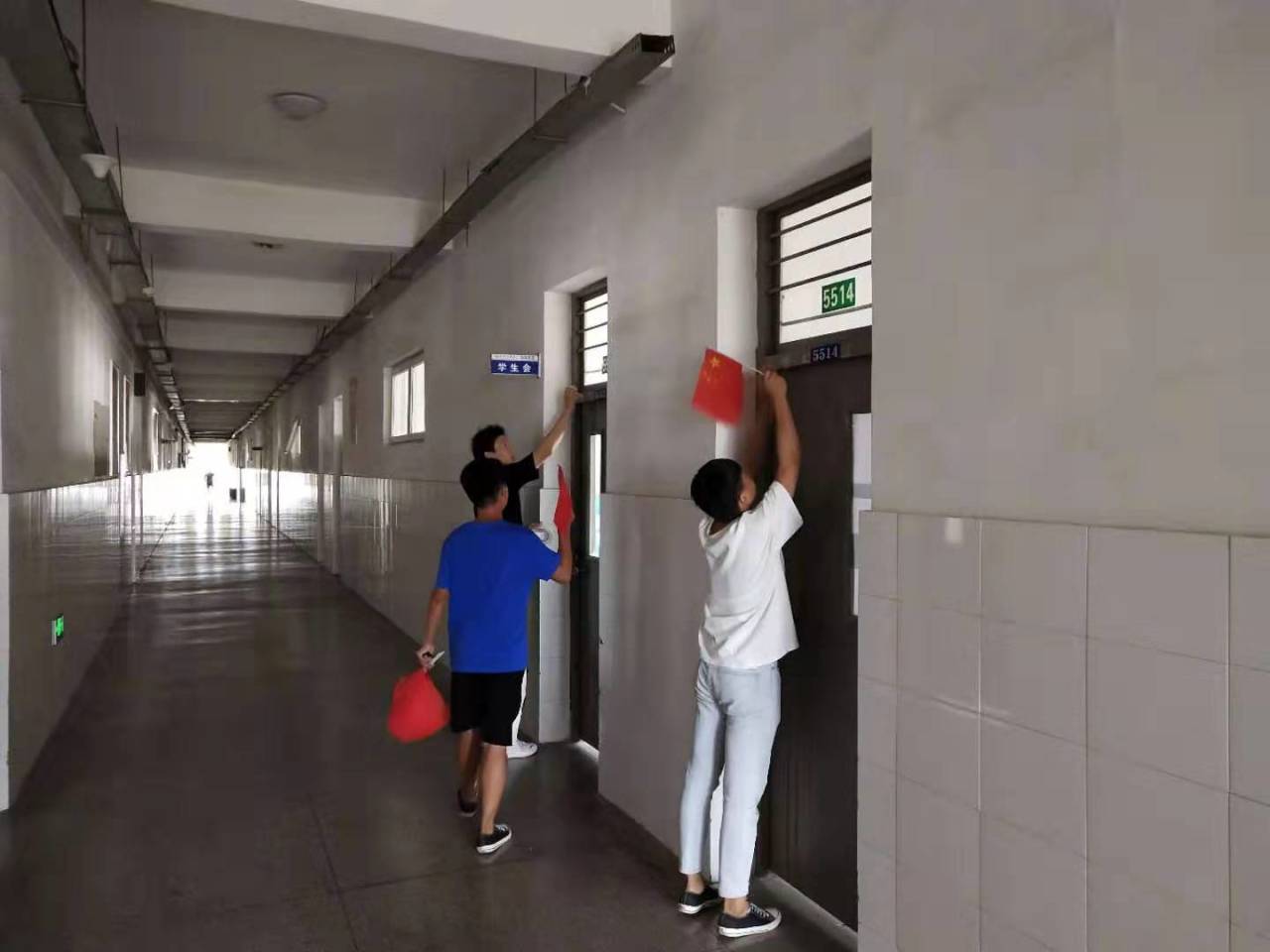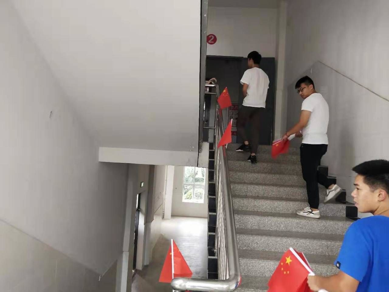 经过同学们的不懈努力,五号楼升起一面面国旗!走进教学楼,无论是教室门口,还是楼梯的扶手上都可以看到飘扬的五星红旗。