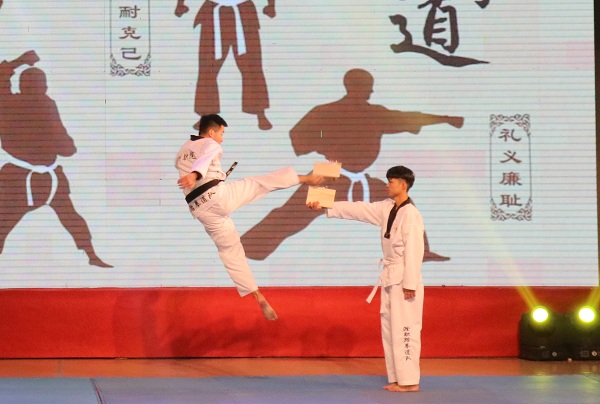 在新葡的京官网艺术团的一段热情的开场舞《the greatetest show》后,晚会正式拉开序幕。在主持人介绍下,精彩的节目轮番上演,整场晚会的节目内容温情与火热并举,形式多样,精彩纷呈。跆拳道道协会的《特技击破》,身姿潇洒,动作刚健有力,每次击破木板都引得观众尖叫连连;歌曲《世间美好与你环环相扣》、《可惜我是水瓶座》、《说谎》、《活着》等轮番上场,或浪漫温馨,或激情澎湃,大家随声哼唱,沉醉其中;