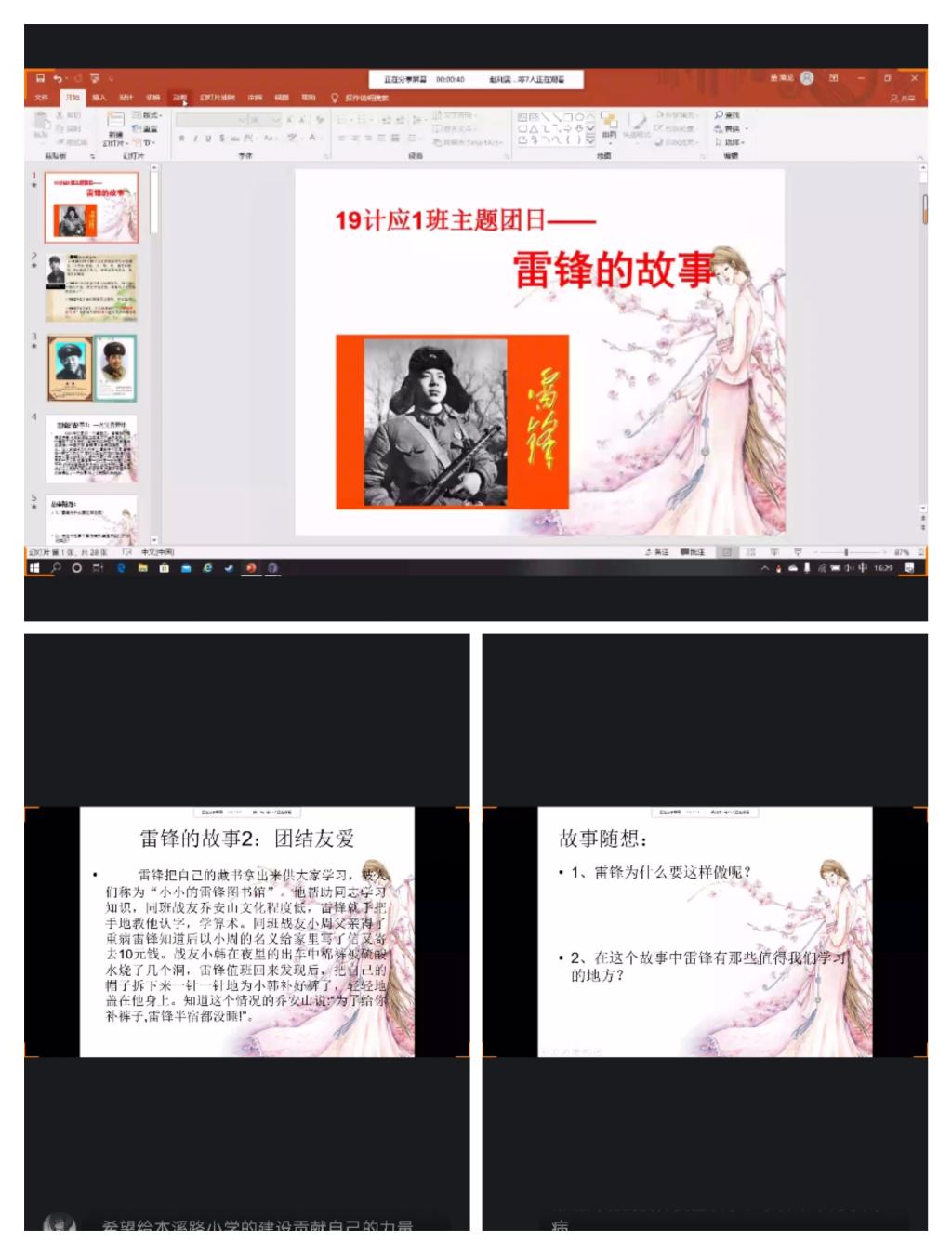 本次团课每个团支部各具风采,有知识问答、有关雷锋的PPT、播放雷锋事迹的视频等等,每个班级都有自己鲜明的主题。此次团课中,大家表现的都相当积极,团课氛围尤为浓郁,有的班级还通过学习先进人物事迹,展开批评与自我批评,互相取长补短。