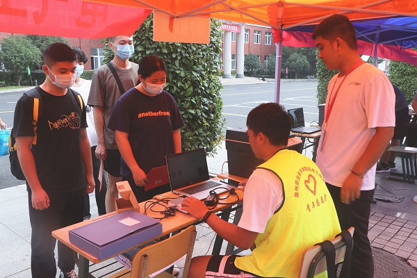 新葡的京官网高度重视疫情防控常态化下的迎新工作,对迎新工作周密部署,并对参加迎新的教师和学生进行培训,组建“迎新工作志愿者服务队”。9月11日早上7点半,新葡的京官网领导、老师和学生志愿者以良好的精神面貌投入到迎新工作中,各司其职、坚守岗位、协助合作。在校门口迎新点、学院注册报到处和新生宿舍楼,都能看到志愿者们顶着烈阳,耐心的解答、认真的核对和热情的服务,学生志愿者们还不辞辛劳的将新生行李搬运到核酸检测点并安全有序的把行李送到新生宿舍,让2021级新生同学感受到新葡的京官网大家庭的温暖。