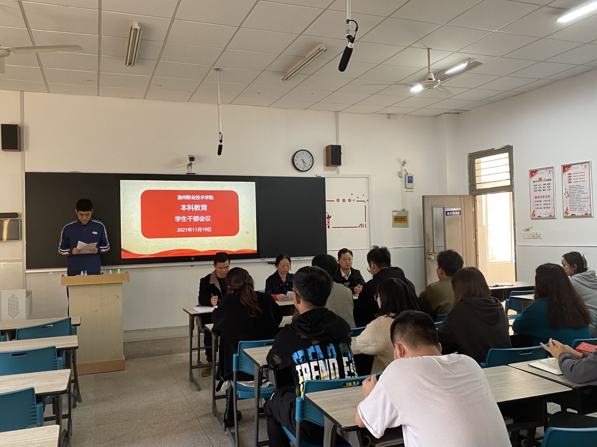 会议最后薛天飞老师对同学提出了几点希望,希望全体学生干部内练素质,外塑形象,提升能力;牢守为同学服务的初心、涵养高尚的德行,奠定良好的群众基础;认真工作,低调做人,同时,以优秀的学业成绩、出色的专业技能为广大同学做好表率。