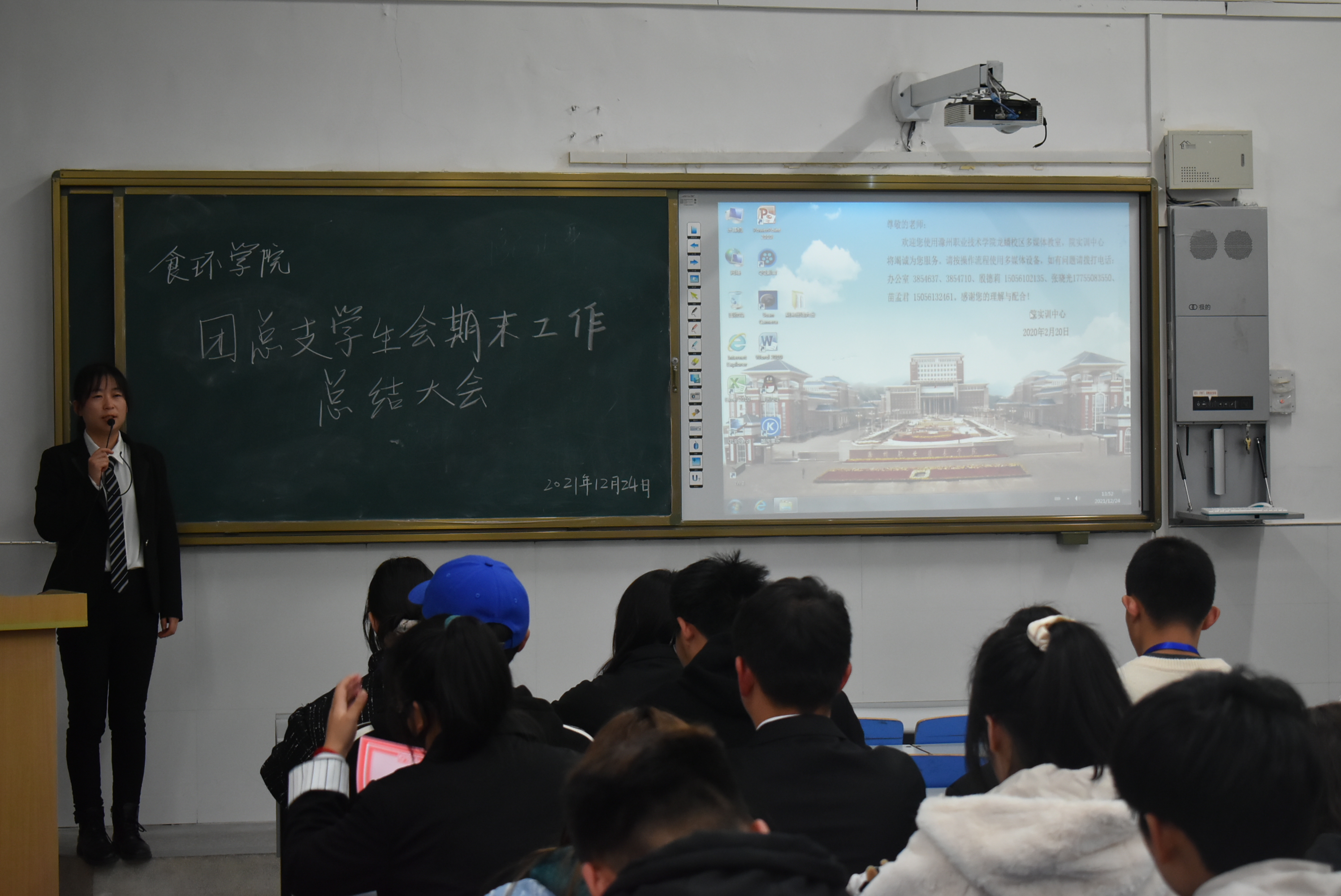 为表彰先进、树立典型,进一步提升团队凝聚力,加强团学组织建设,12月24日中午,食环学院团总支在致善楼2111教室召开团学组织工作总结暨表彰大会,团总支负责人李瑞瑞老师及全体团学干出席本次大会。大会由学生会办公室干事江婧雅主持。