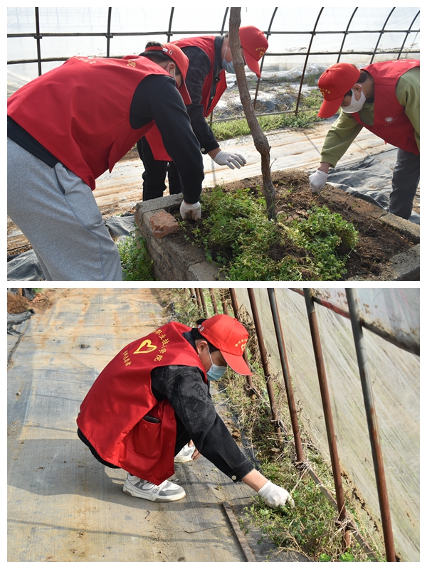 在园林园艺系主任江生泉副教授的带领下,同学们迎着春风、拿上工具踊跃投入到活动中。草长莺飞,春回大地,实训基地葡萄大棚内的杂草生长旺盛,同学们对大棚内的杂草进行了全面清理。