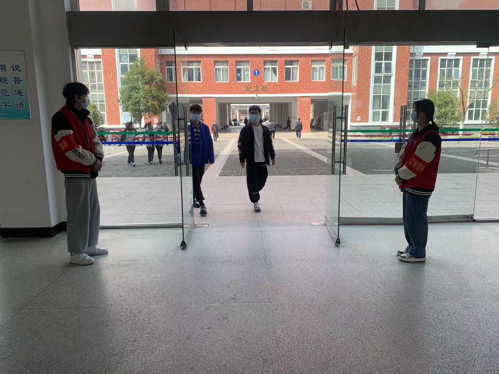 志愿者们穿上红马甲,在学校东门口开展疫情防控志愿服务工作,提醒进出师生佩戴好口罩,核查进出人员的安康码、出入证、行程码并测体温,做好信息登记。在教学楼,入党积极分子戴上红袖章,提醒来往学生戴好口罩,做好个人防护。一张张年轻的脸庞,一件件火红的马甲,树立起一面面鲜红的青年志愿者旗帜,为疫情防控一线带来一抹青春色彩,有力彰显了新葡的京官网新时代青年的力量与担当。
