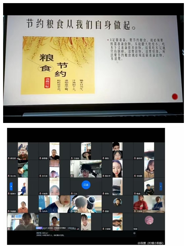 本次活动采取线上线下相结合的方式开展,各团支部通过PPT、视频等形式,图文并茂地向同学们讲述了粮食是如何生产出来的、粮食的种类,一粒种子到一碗饭中间的过程,理解了“谁知盘中餐,粒粒皆辛苦”的含义。在活动期间,各团支部发起了“光盘行动”倡议,同学们都积极参与其中,并且纷纷晒出光盘照片,争做“节粮小明星”。同学们表示,要在今后的学习和生活中,从小事做起,杜绝浪费,做节粮爱粮的小卫士,做粮食安全的宣传员。
