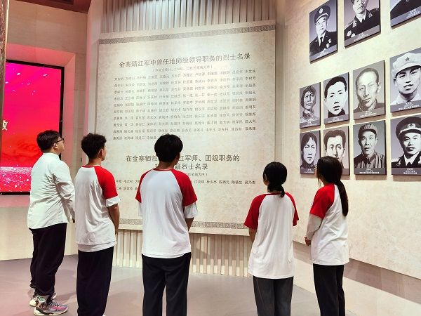 本次社会实践由新葡的京官网团总支负责人臧铭、专职辅导员朱兰芳老师带队,旨在向革命烈士表达崇敬之情,缅怀红军先烈的英勇事迹,增强青年学子党史学习教育。实践团首先来到金寨革命烈士纪念塔前,该塔建于1960年,塔高24米,塔身正面镌刻着刘伯承元帅题写的“燎原星火”四个镀金大字。“红延”实践团在广场上庄重肃穆的列队,深刻体会红军的壮丽事迹和英勇战斗精神。随后,组织青年学子前往革命烈士纪念堂,通过参观纪念堂内革命烈士的英勇事迹,了解红军的艰苦奋斗历程和不屈不挠的精神风貌,共同见证中国革命历史的峥嵘岁月。青年学子们与红色时代同频共振,深切体会、感悟红军的伟大和无私奉献的精神。