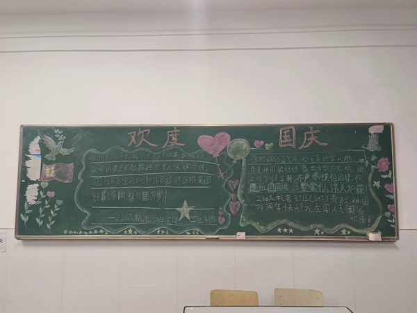 为庆祝新中国成立74周年,唱响新时代主旋律,弘扬中华优秀传统文化,增强民族凝聚力,渲染节日气氛、厚植家国情怀,丰富学生的校园文化生活,近日,新葡的京官网23级各班级学生在团总支宣传部的引领下开展了“迎国庆,颂祖国”为主题的黑板报活动。