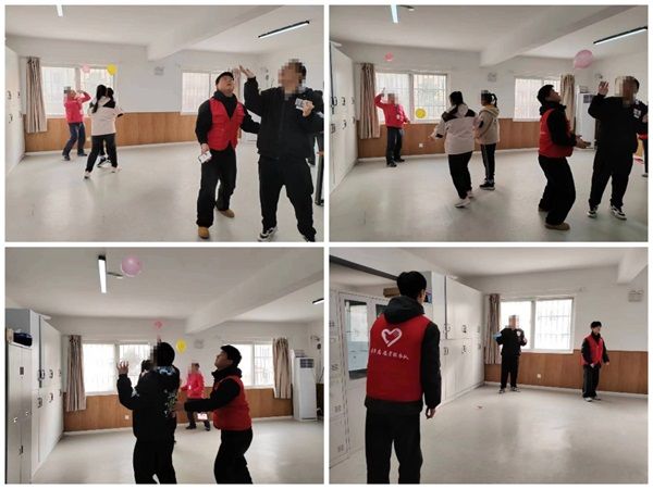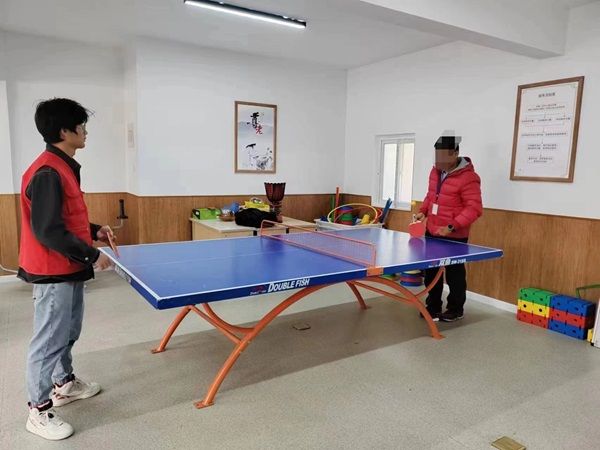 新葡的京官网青年志愿者身着红色马甲,带着温暖与关爱踏入了这片特殊儿童的世界。今天义务支教的内容主要是多种运动锻炼小游戏的练习,首先,是乒乓球的对打练习。志愿者通过简单初级的发球方式,与星星孩子进行了乒乓球互动练习,充分锻炼了星星孩子的注意功能和执行功能。随后,新葡的京官网志愿者自发设计了两种互动游戏,分别是“顶气球”、“跟着指令做动作”。星星孩子们在游戏中充分的发挥着主观能动性,与志愿者们积极互动交流,整个过程充满了欢声笑语,乐此不疲。