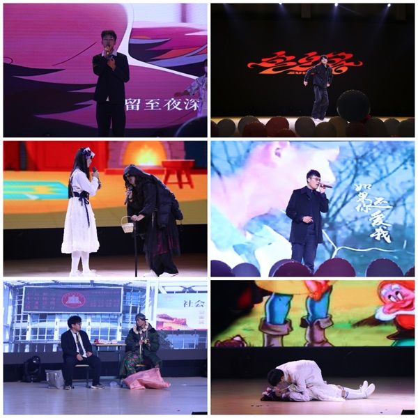 伴随着主持人的宣布,元旦联欢晚会正式开始,舞蹈、歌曲、乐器合奏、哑剧、情景剧等多种表演尽数登场。舞蹈《GG bond》《胭脂妆》《荧光舞》《极乐净土》《雪崩》舞者们用轻盈的舞步点燃了会场气氛,给师生们带来了一场美妙绝伦的视觉盛宴;歌曲《云烟成雨》《春风十里》《如果你还爱我》《皖乡恋歌》同学们的歌声旋律婉转悠扬,饱含深切情感,使在场师生沉浸在音乐的世界里;情景剧《攀比》《白雪公主在逃记》同学们用夸张的动作,丰富的情感,惹得在场师生开怀大笑。在本次联欢晚会中更是邀请到老年大学的表演者,节目混元太极拳《我爱你中国》和民族舞《唱响新时代》的精彩演出让在场师生眼前一亮,掌声不断。在抽取幸运观众与玩偶颁奖、撒糖环节中,现场更是气氛高涨,火热异常。最后在一首振奋人心的大合唱《强军战歌》后本次元旦晚会圆满落幕。
