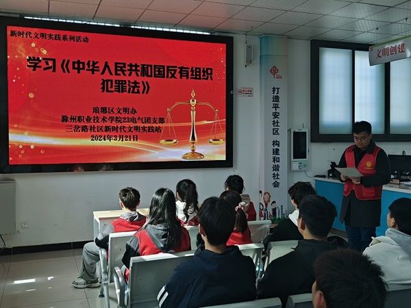 活动伊始,支部成员在琅琊区文明办的指引下,首先共同学习了《中华人民共和国反有组织犯罪法》。随后,参观三岔路社区党章馆。三岔路党章馆负责人结合我国重大历史事件带领大家了解一位位伟人背后的故事,例如“两弹一星”之父,钱学森入党时丰富的内心活动以及入党成功后的激动欣喜,通过一本本修订的党章,以图文并茂的形式再现党的百年辉煌。大家认真聆听,努力从馆内每一帧画面回顾先辈们那段呕心泣血、栉风沐雨的奋斗历程,更加坚定共产主义理想信念,传承发扬红色精神的决心。