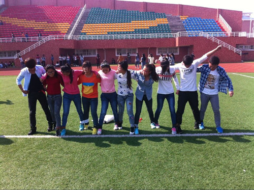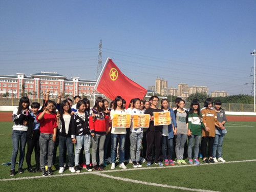 2014年10月27日,经济贸易系团总支学生会为了丰富课余文化生活,促进交流,增强同学间的团队意识和协作精神,在新操场开展第四届“十人十一足”趣味比赛。