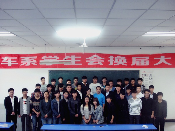 2014年10月24日,汽车系学生会在北阶204教室举行换届大会。院团委副书记刘杰,系学生会指导老师朱婷婷,学生会主席李斯亮、徐跃光以及系学生会全体学干参加了本次大会。