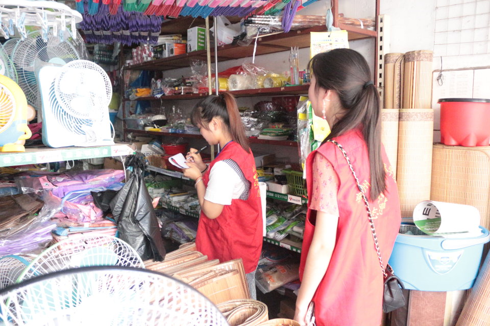 本次活动志愿者们对主要对湖心路路段的商户进行信息登记,共计89家。志愿者们对店铺负责人、店铺名称、经营范围、联系方式以及店铺门前“三包”情况进行登记。调查过程中存在机动车、非机动车乱停乱放现象;部门路口路段路面存在破损缺失现象;存在垃圾散落现象等。活动过程中,大多数各家商户全力配合,小部分存在态度生硬不配合的现象,但志愿者们毫不气馁,顺利完成此次商户信息登记活动。