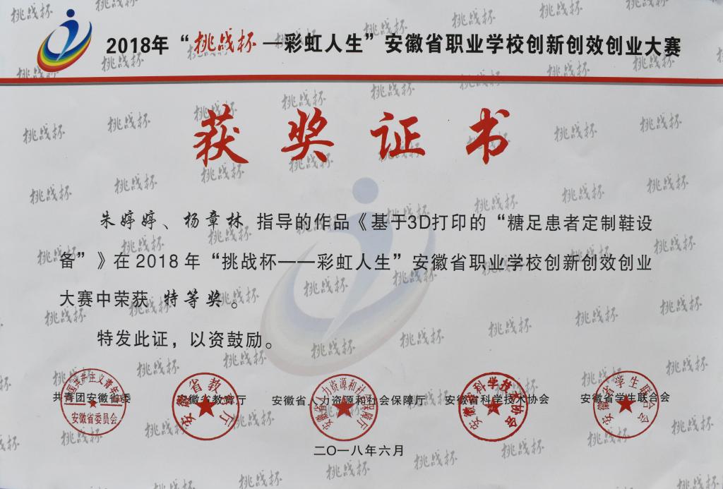 经过激烈的角逐和决赛专家评审,朱婷婷、杨章林老师指导的作品《基于3D打印的“糖足”患者定制鞋设备》荣获特等奖,杨诚、张信群老师指导的作品《水果采摘器》荣获一等奖,疏剑、谭志银老师指导的作品《汽车安全带锁止性能综合试验机》荣获二等奖,学院同时荣获优秀组织奖,取得历史性的突破。本次大赛中,全省高职组特等奖10个、一等奖18个、优秀组织奖20个。