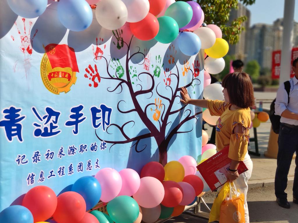 随着报到工作的进行,小树上的手印也越来越多,美好的大学生活从这就要开始了!奋斗的青春最美丽,信息工程系团总支将与大家共创美好回忆,让我们共同期待!