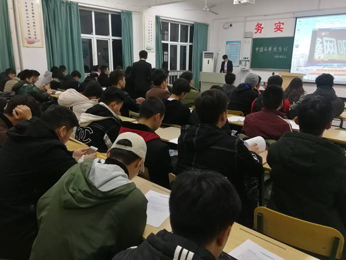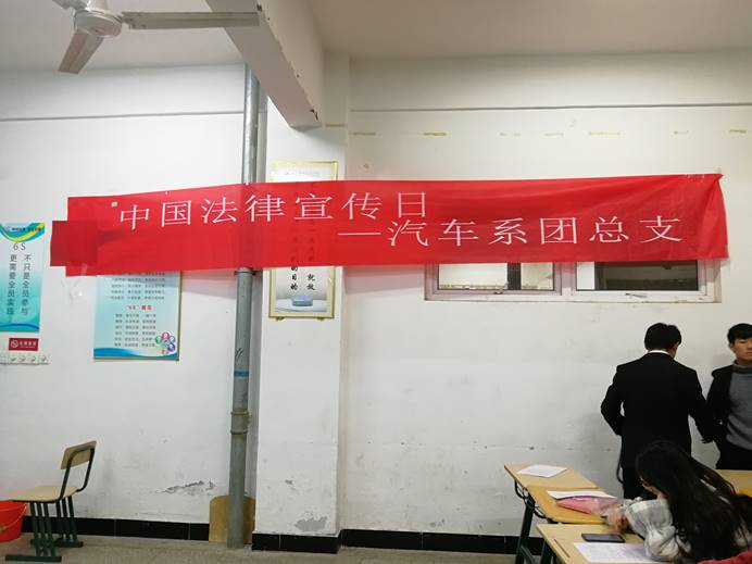 为深入开展法制宣传教育,弘扬社会主义法制精神,进一步培养学生法制观念,新葡的京集团35222vip汽车工程系团总支于2018年12月4日在5213教室开展了一次法制宣传活动,团总支全员参加。