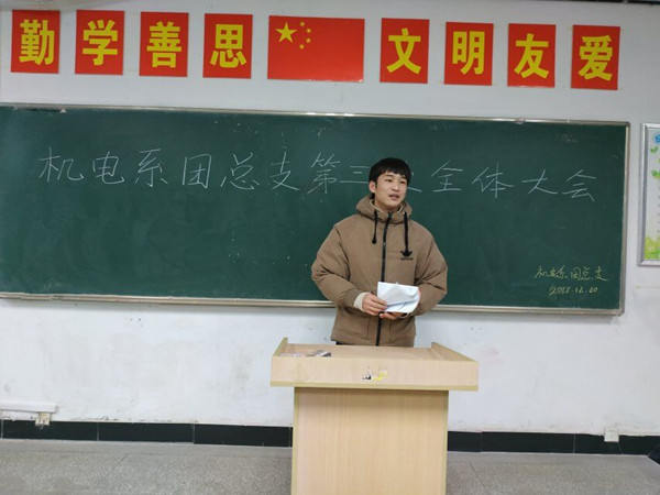 12月20日中午,机电系团总支第三次全体大会在5102教室举行,会议由我系团总支宣传部副部长代铁成主持,全体团总支干事参加会议。