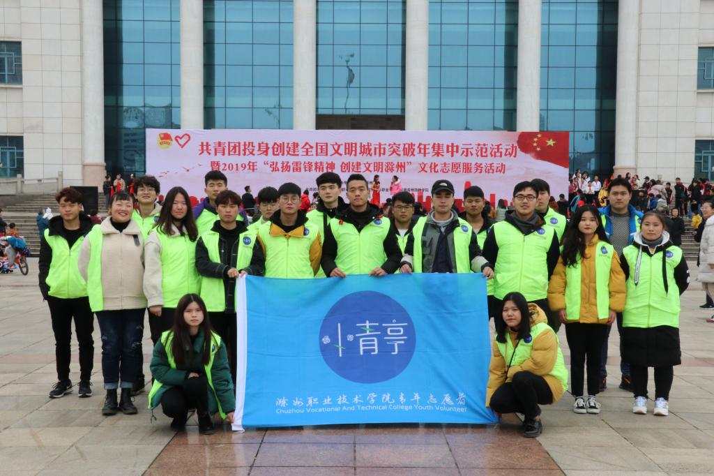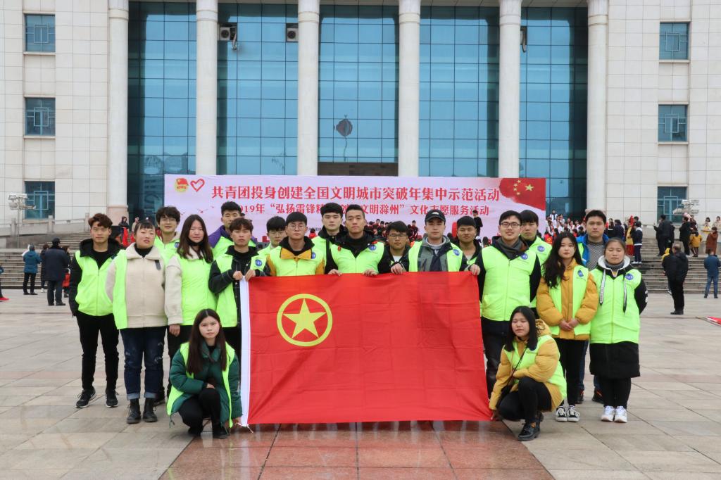 2019年3月3日上午,由共青团滁州市委主办的“共青团投身创建全国文明城市突破年集中示范活动暨2019年‘弘扬雷锋精神 创建文明滁州’文化志愿服务活动”在滁州市人民广场举行。新葡的京官网“小青亭”志愿者服务队参加此次活动。
