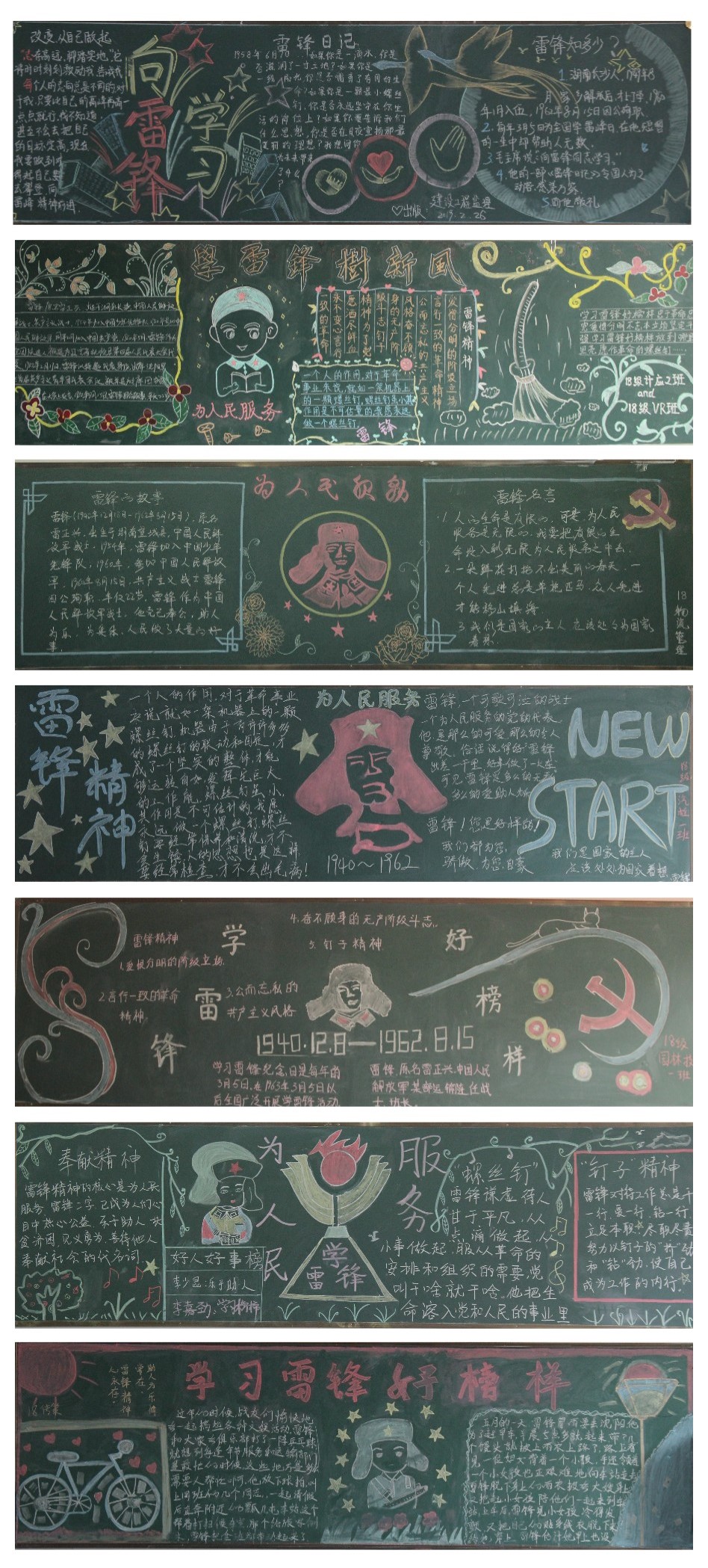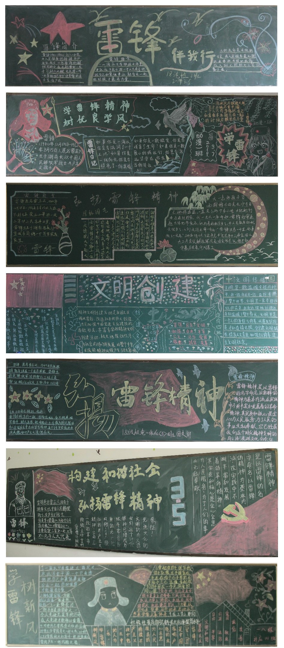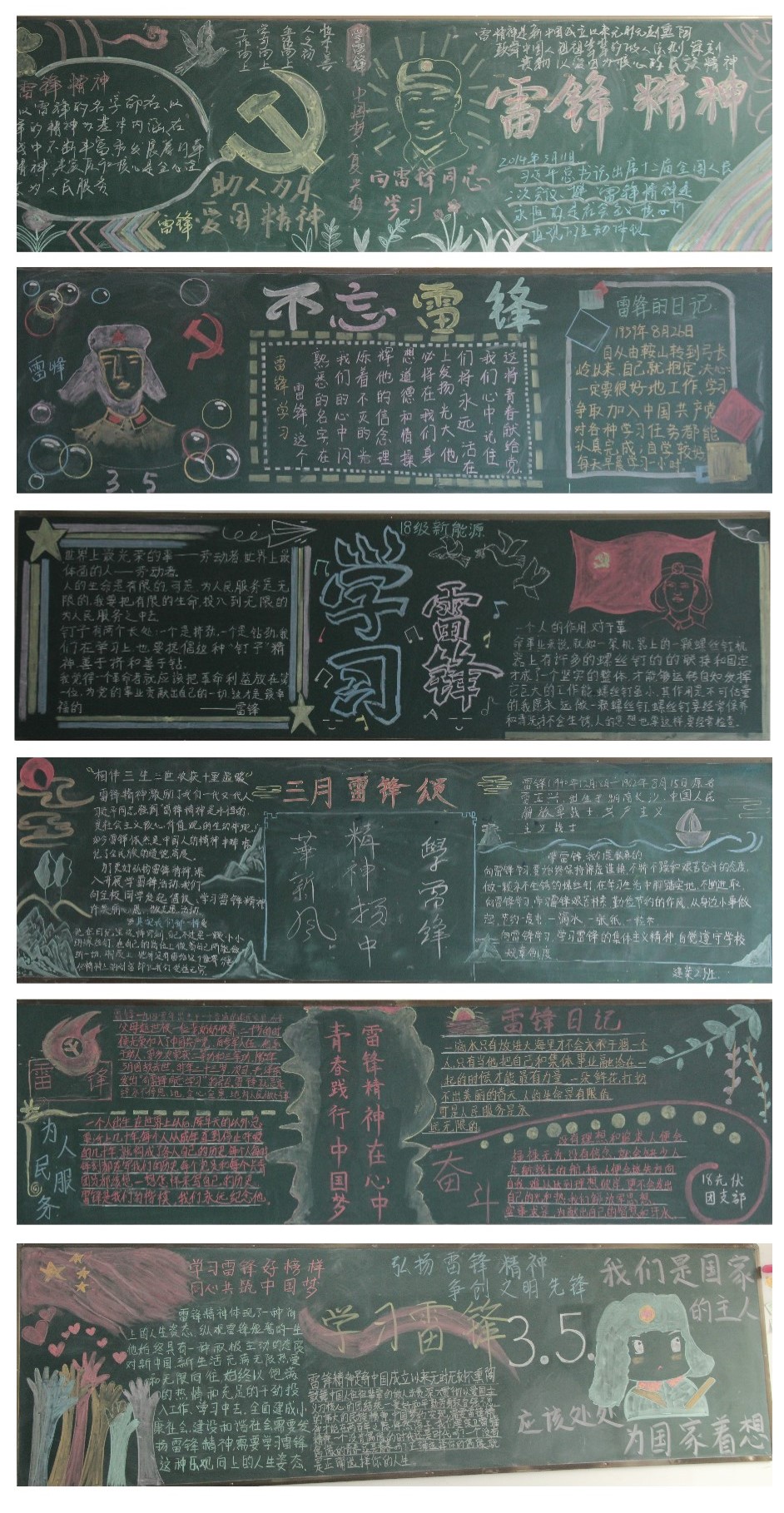 此次活动得到了全校各班级的高度重视,各系团总支精心组织,同学们积极参与,认真设计,充分利用黑板报这块宣传阵地,根据板报能否围绕主题选取相关内容、主题鲜明、版面设计美观、图文并茂、整体效果来进行评比,黑板报通过对雷锋的生平事迹进行全方位宣传,充分展现无私奉献的雷锋形象。