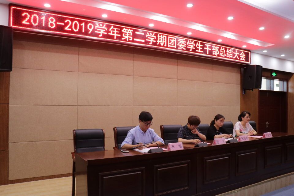 2019年6月26日,2018-2019学年第二学期团委学生会工作总结大会在南阶205召开。校团委书记朱婷婷、校团委副书记张文、校团委部长谭康慧、校团委老师李朋出席本次会议,校团委各直属学生组织参加本次大会。