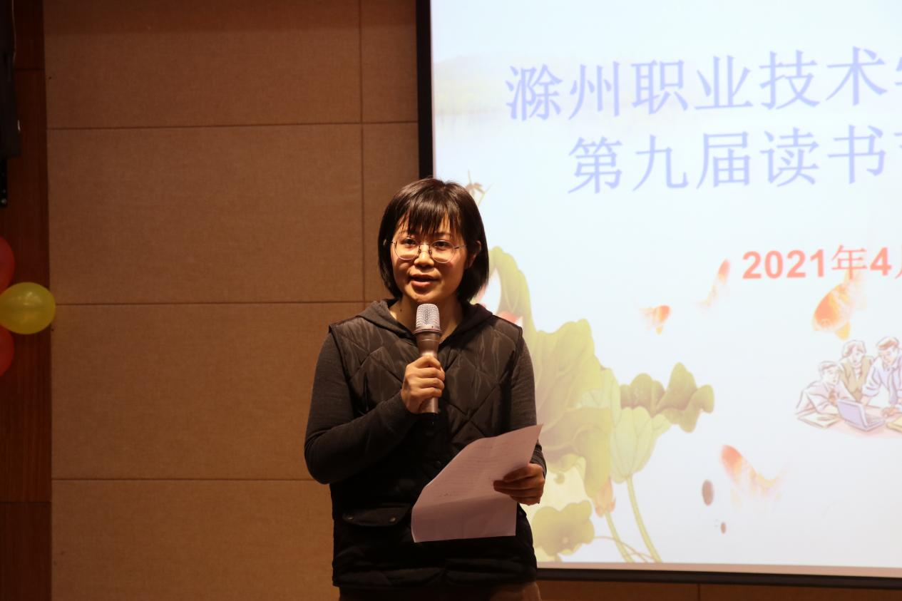 开幕式活动第一项,由图书馆张雯雯老师为开幕式活动致辞。她指出,读书要从个人出发,从学识出发,从学校出发,并向全校师生发出读书倡议,要多读书,读好书,与书相伴,把读书当成人生不可分割的一部分。