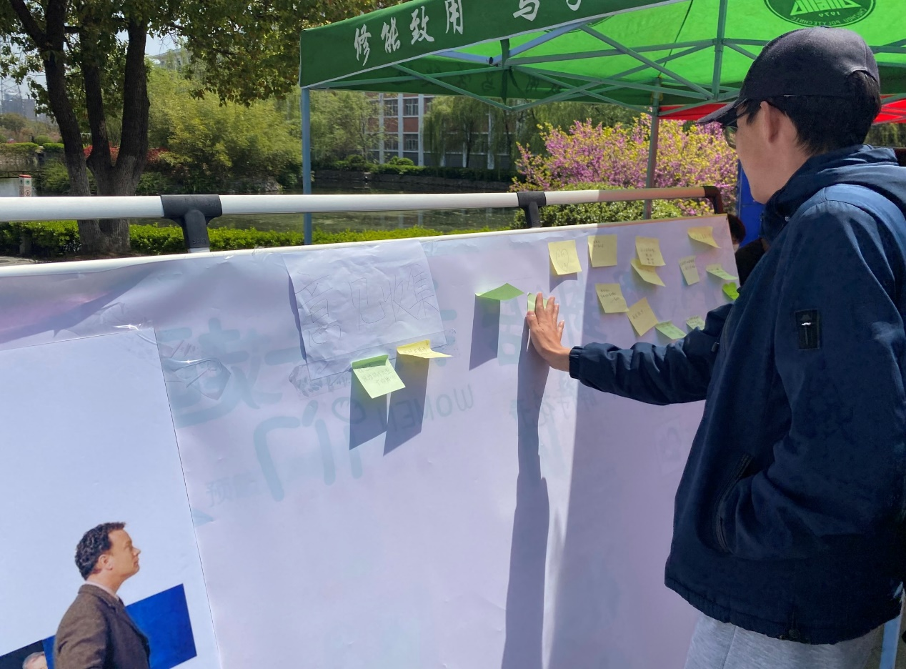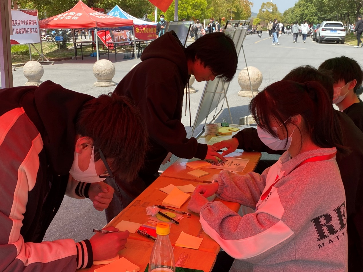 突如其来的疫情,打乱了学生的生活节奏。校学生会针对疫情防控下学生生活学习难点焦点,广开言路,于2022年4月2日在学校池塘边开展“我为抗疫献一计”意见征求活动,认真梳理学生诉求。