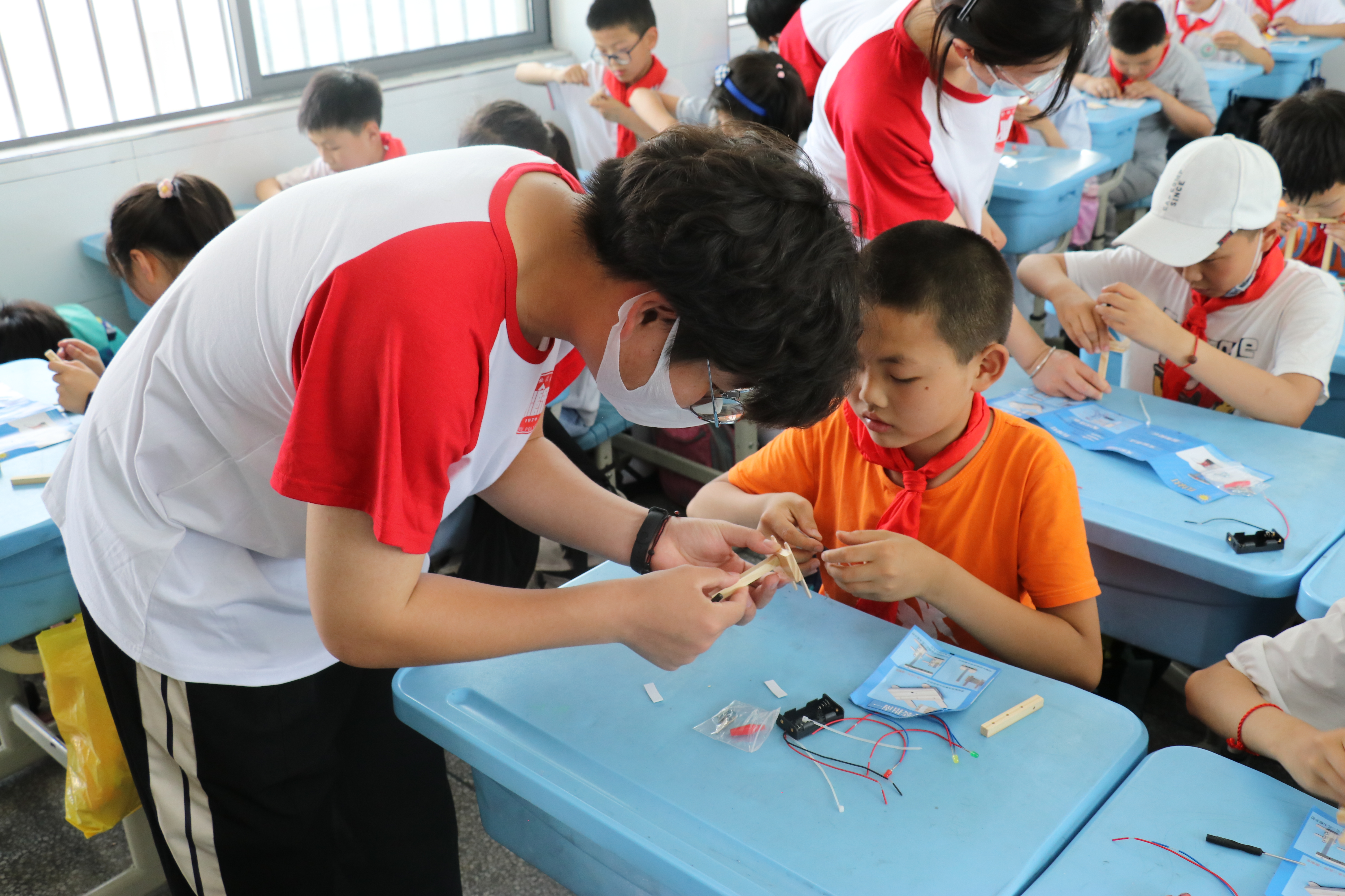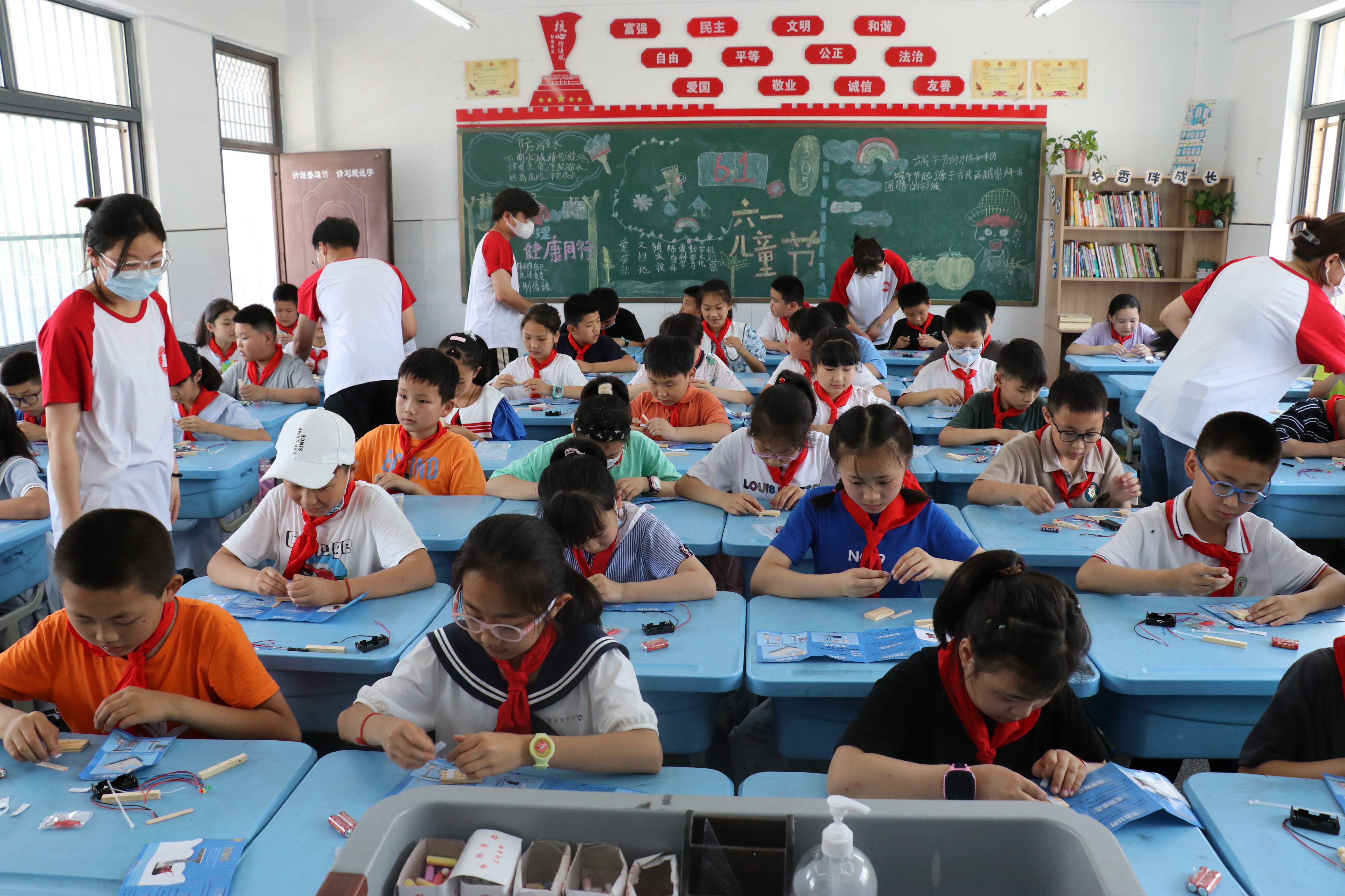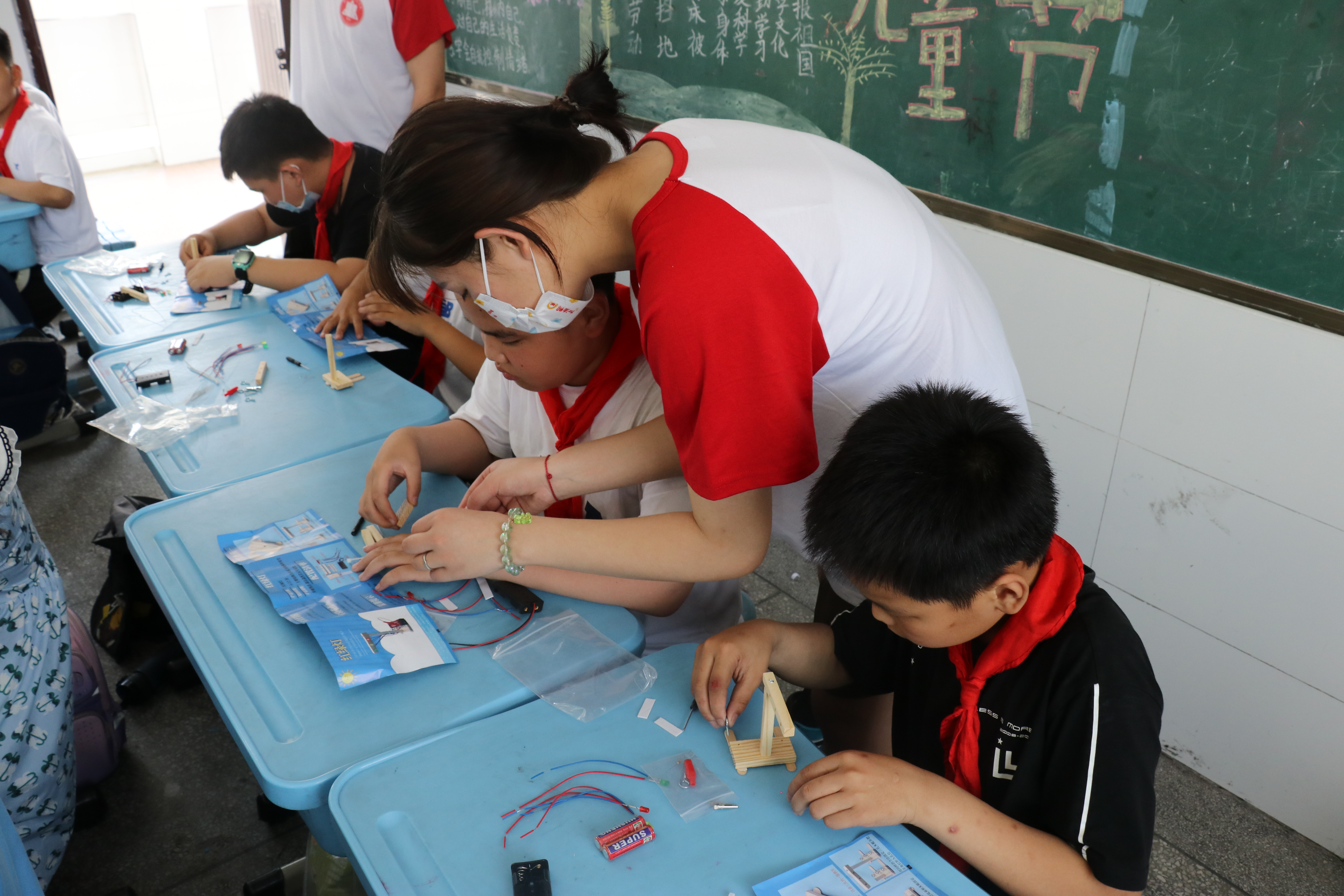 为了增强青少年“创意发挥”的动手能力,充分体验小制作的乐趣与魅力,亲身感受团结协作、互相配合的重要性,在“六一”儿童节当天,新葡的京集团35222vip小青亭志愿服务队在校团委朱芡芡老师的带领下前往滁州市龙蟠小学为四年级三班的小朋友带去了拼装红绿灯玩具、羊毛毡、舞龙灯等手工组装玩具。