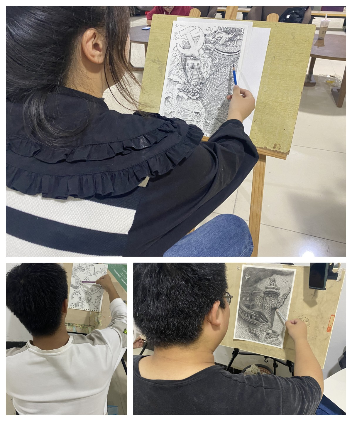 本次活动总共分三个环节,环节一参加同学先自我介绍,比赛开始,参赛者根据绘画主题创作一副主题鲜明,新颖,构图完整,色彩和谐的绘画作品,绘画种类不限。最后,由社团负责人根据绘画者作品进行评比。