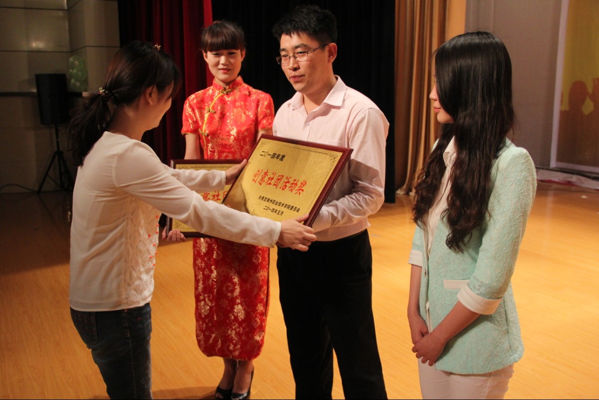 在节目中穿插进行了颁奖仪式,领导和老师们对本次文化节中各社团开展活动取得的奖项进行了颁发,同时还颁发了优秀社团组织奖、创意社团活动奖和最具影响力社团活动奖。计算机协会和CAD协会荣获了优秀社团组织奖,书法协会和心理协会获得创意社团活动奖,广播站和求是青年社获得最具影响力社团活动奖