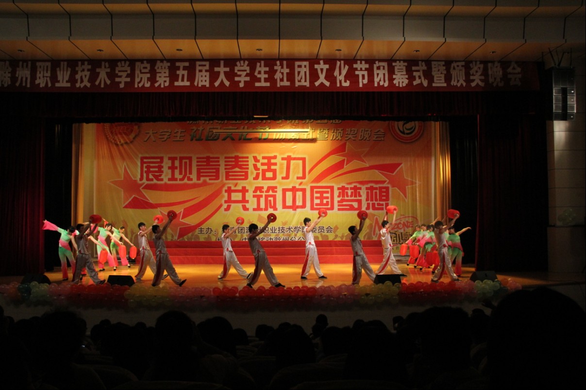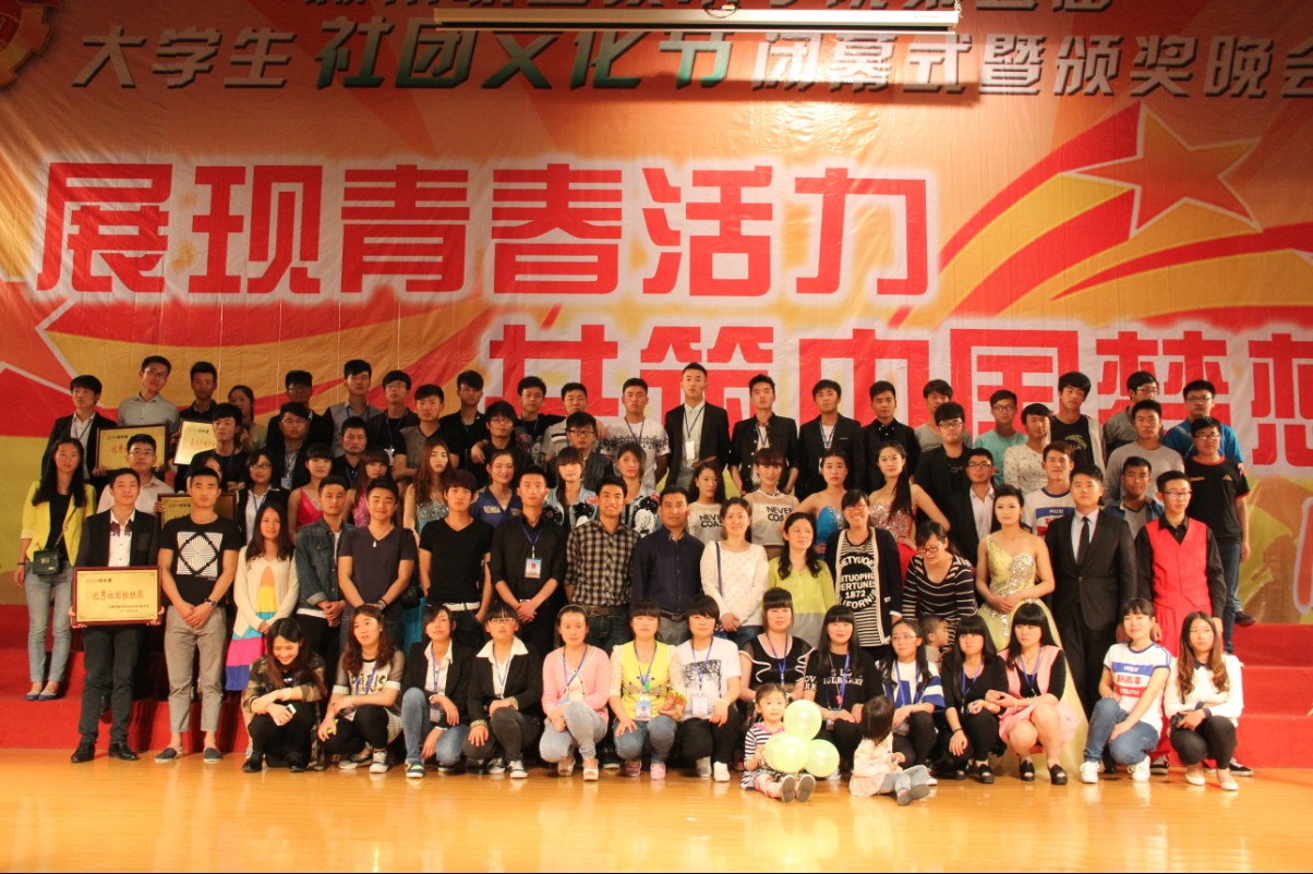 5月14日晚七点由院团委主办的以“展现青春活力,共筑中国梦想”为主题的第五届社团文化节闭幕式暨颁奖晚会在大礼堂隆重举行。出席本次活动的领导有:院团委书记王蓓蓓、副书记刘杰、副书记程诚、团委老师朱婷婷、大学生社团联合会指导老师甄帅及各系团总支书记;