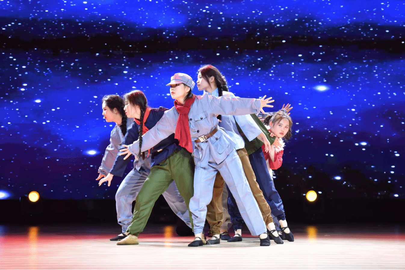 本次晚会总共分三个篇章12个节目,大学生艺术团参演了《我和我的祖国》、《八女投江》、《再扬帆》三个节目。