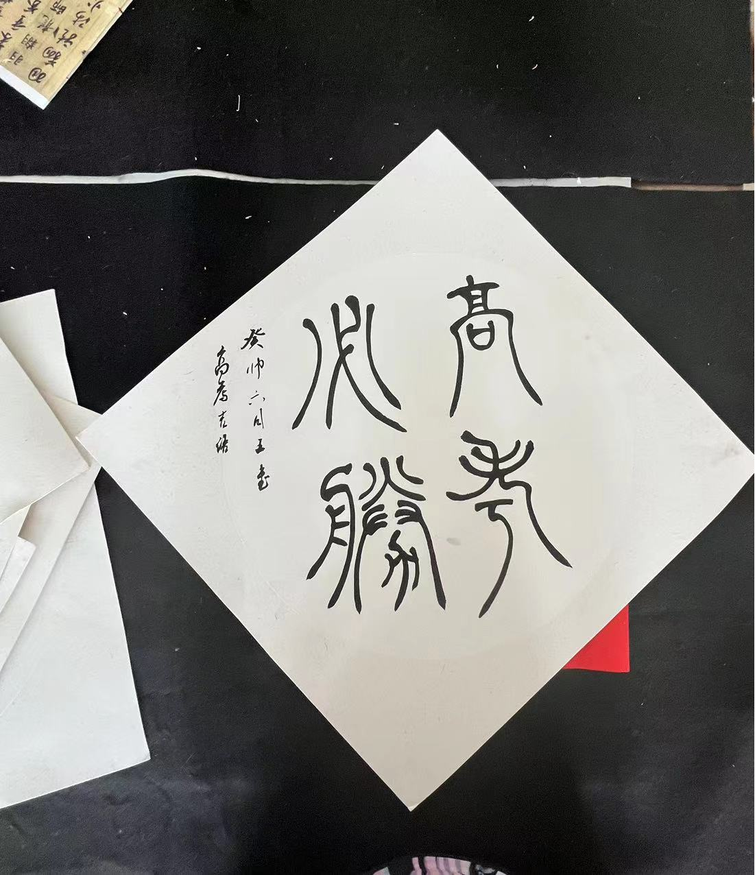 活动中,参加的同学们准备高考加油的内容进行书法撰写。此次撰写的内容是:高考祝福语,为高考生加油助力。组织社员用手中的毛笔挥毫寄情,助力高三学子,为梦想加油。
