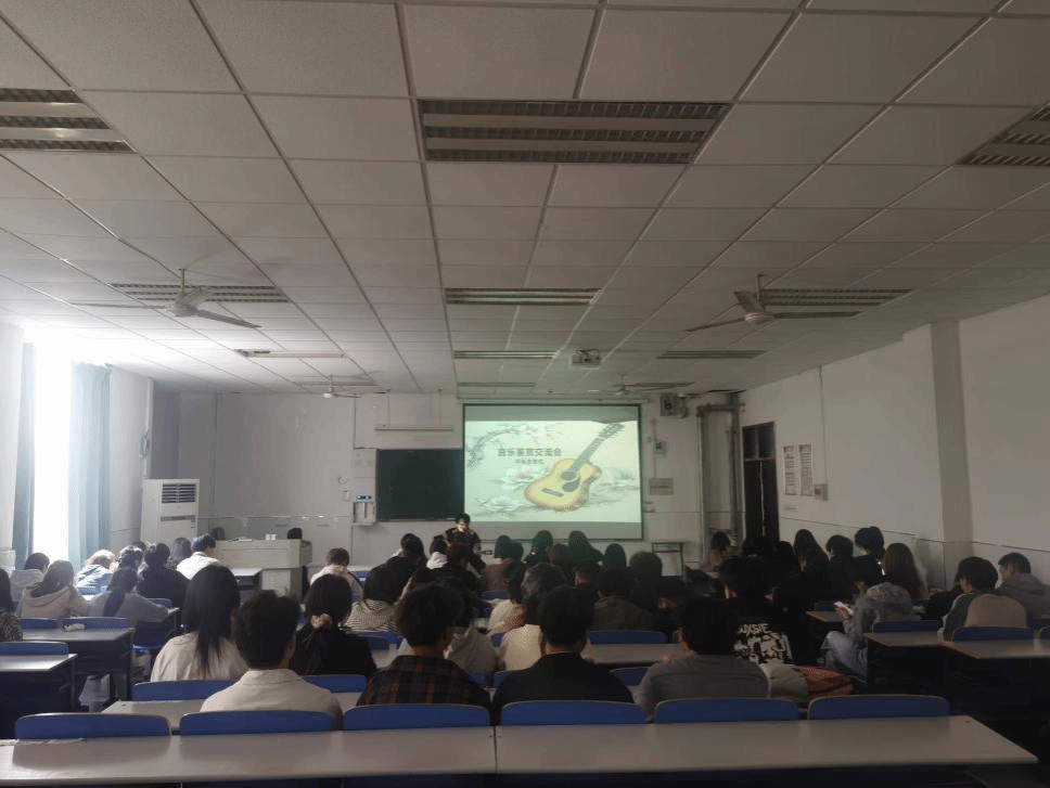 为发展学生特长,丰富校园文化生活,华彩吉他社于4月10日中午在致真楼1119开展音乐鉴赏交流会活动。华彩吉他社指导老师赵莹、王晶晶亲临现场指导活动开展,社团骨干各司其职,百余名同学来到活动现场参与其中。
