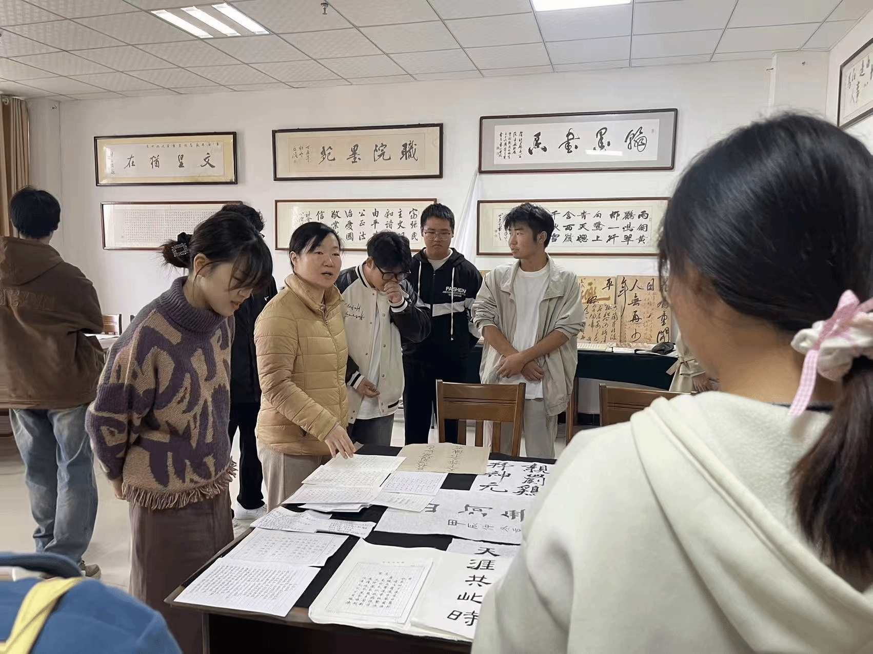 书法协会指导老师也亲临现场,两位老师认真地查看每位社员的书写作品,并适时提供专业的指导。从笔法的运用到结构的把握,老师的指导细致入微,让社员们受益匪浅。社员们虚心接受建议,精益求精地完善自己的作品,力求让笔下的每一个字都散发出书法艺术的独特魅力。
